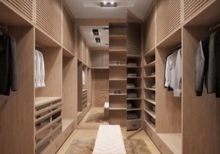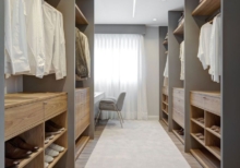 دريسينج رووم تصميم مفتوح لون رمادي مع خشبي |